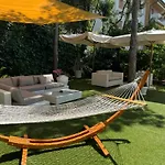 A hotel napernyőket kínál a csendes strandon, amely csak egy 7 perces sétára található.